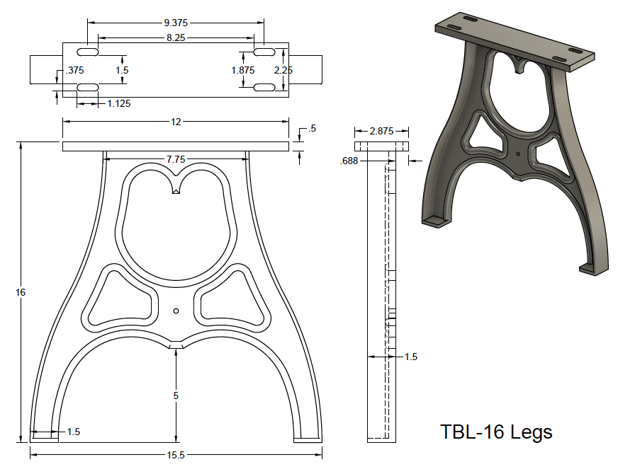Very similar to cast iron table legs, these 16" cast aluminum table legs are very heavy duty able to withstand practically any table top you choose to use. The cast aluminum makes these table legs incredibly strong while keeping things to a manageable weight.