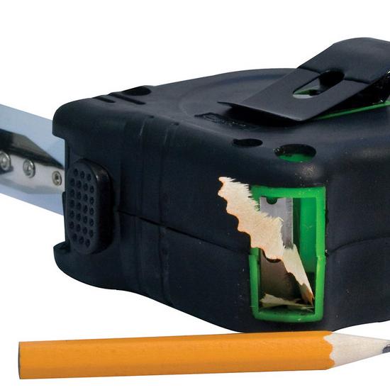 The ProCarpenter Tape Measures are developed with 7 innovative features: Lever action belt clip, Pencil sharpener, Dual locking system, Erasable notepad, Heavy-duty 1-inch blade, High-contrast tape & Rugged compact design.