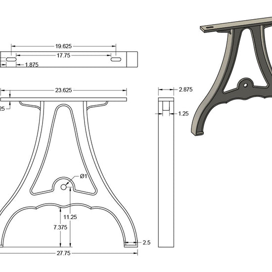 Featuring a 23-1/2″ mounting width and 28″ bottom span, these legs offer excellent stability under wider tops while maintaining a sleek low profile look. -