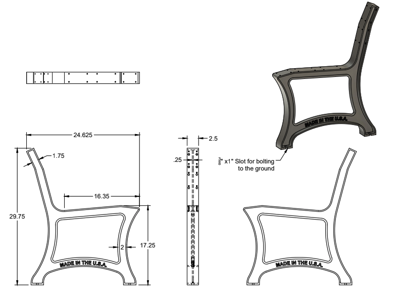 Cast Aluminum Park Bench Legs (Brunswick), Set of 2