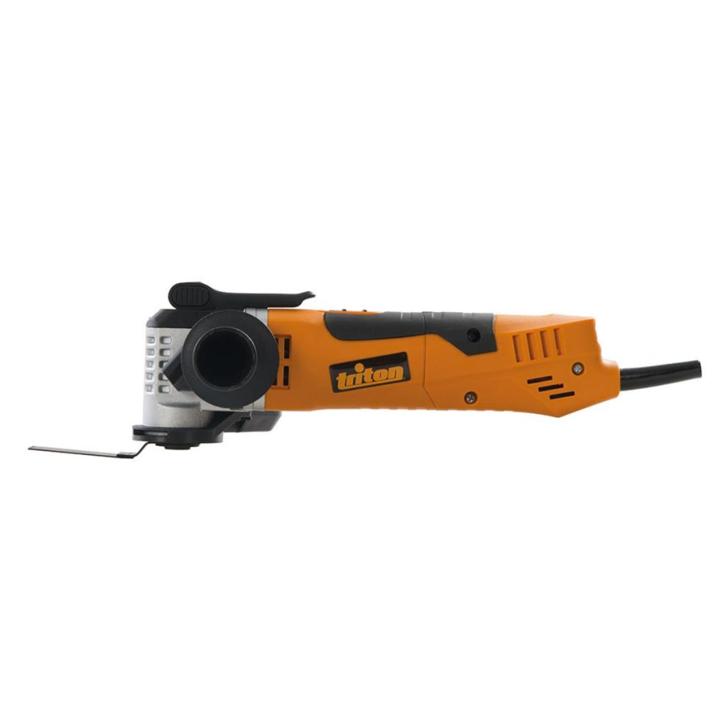Versatile and powerful 2.5A Keyless multi tool that cuts, sands, scrapes, grinds, rasps and polishes. Delivers high-performance sawing without a rotating blade. Compact, precision motor with superior performance. Side-mounted, removable auxiliary handle and ergonomic rubber-over-moulded grips reduce vibration and fatigue. Long power cable extends reach for optimal manoeuvrability. Quick-change, keyless accessory mounting. Dual sided LED worklights. Removable dust collar for connection to dust extraction system. Variable speed 11,000 - 21,000 oscillations per minute. Includes dust extraction collar, auxiliary handle, 25 x sanding sheets, 2 x scraper blades, 3 x saw blades, 1 x rasp sanding pad, 1 x carbide blade, 1 x hook and loop sanding pad, accessory holder and carry bag.