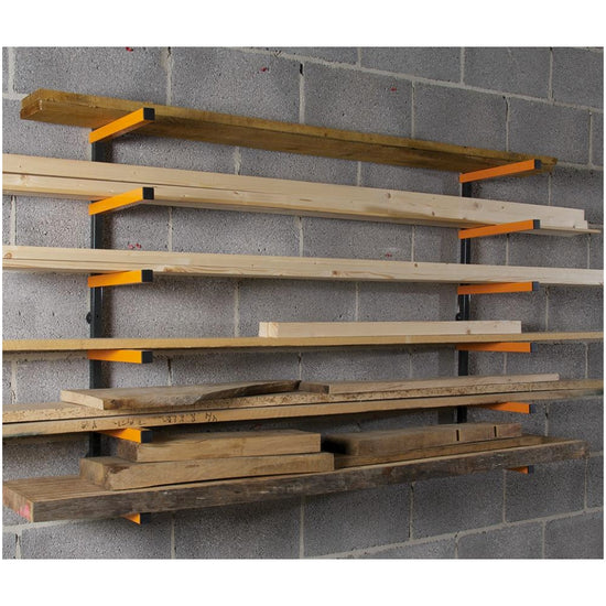 Provides generous storage capacity for timber, pipes and other long items. For internal or external mounting applications in workshops, garages, sheds, on fences and walls etc. 6 levels of storage. Easy installation.