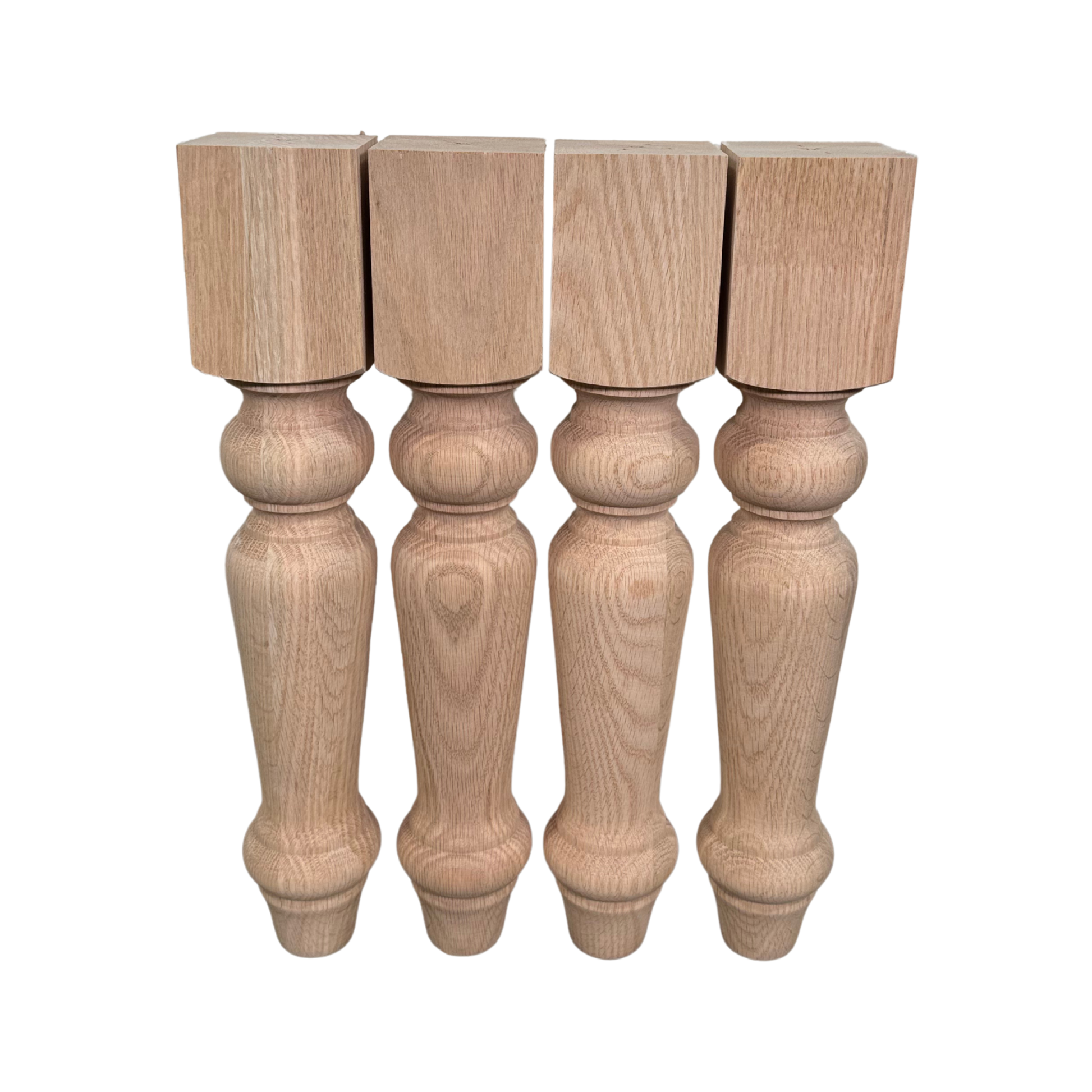 3" x 17" Chunky Farmhouse Coffee Table/Bench Legs, Oak, Unfinished, Set of 4