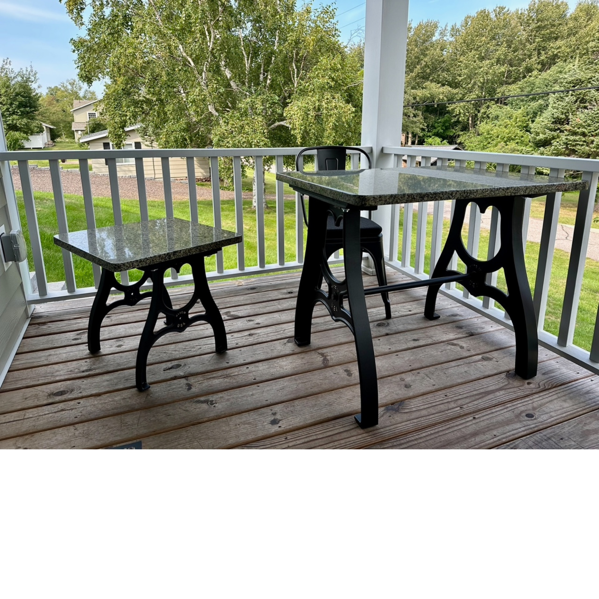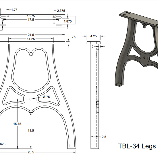 These 34" cast aluminum counter height legs are very heavy duty and able to withstand practically any table top you choose to use. The cast aluminum makes these table legs incredibly strong while keeping things to a manageable weight.
