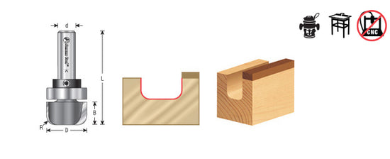 45983 Carbide Tipped Bowl & Tray 1/8 Radius x 1/2 Dia x 1/2 x 1/4 Inch Shank with Upper BB