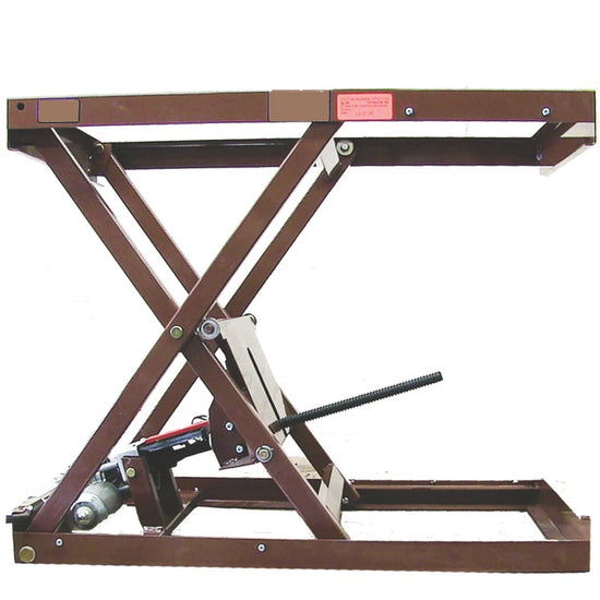The load rating ranges from 180 lbs. to 300 lbs. We also offer electric lifts with smaller footprints, electric lifts for tables and electric lifts for flat screen TVs.