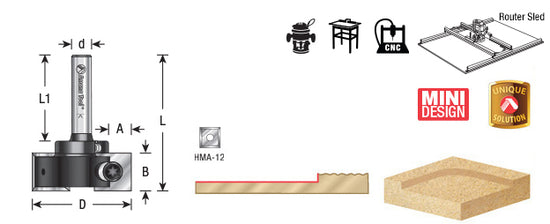 Mini insert carbide spoilboard surfacing & rabbeting router bit great for cutting tight corners and surface planing.