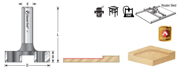 Carbide tipped spoilboard surfacing & rabbeting router bit great for cutting tight corners and surface planing.