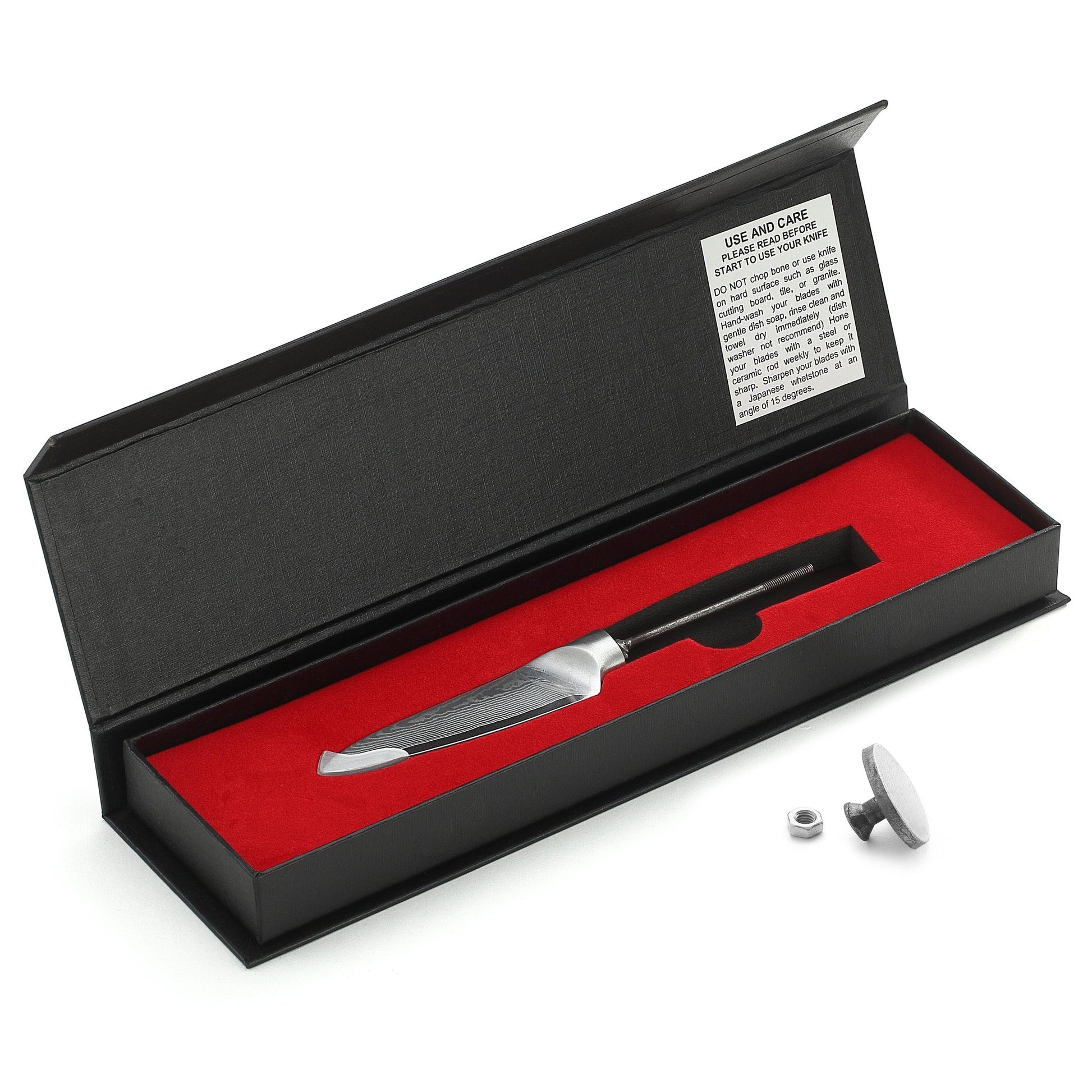 PROFESSIONAL PARING KNIFE – Our 3.5”Small Paring knife has a razor-sharp edge and agile blade. Its thin enough for delicate work like hulling strawberries or shelling shrimps. Create your own ergonomic handle out of any material around the perfectly balanced hidden tang handle. Transform into a kitchen samurai with your new kitchen knife.