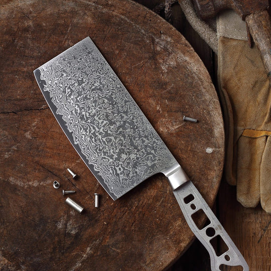 - KITCHEN KNIFE MAKING KIT – This woodworking project kit includes a full tang knife blank ONLY. Customize your very own knife handle by using wood, metal, Micarta, or even leather to create a cool accent. Give your Chinese Cleaver a unique personality by hand finishing all the parts. BONUS: Includes 3 sets of metal pins and a Mosaic center pin.