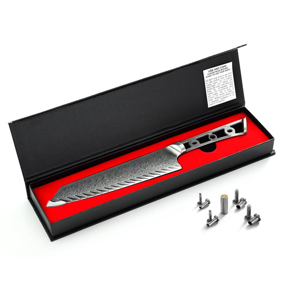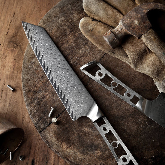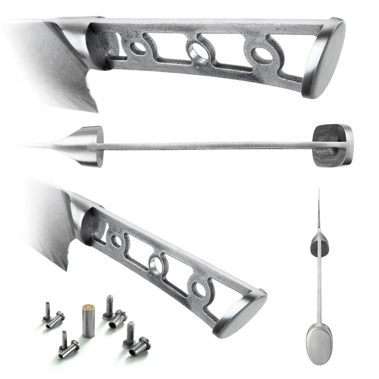 - WOODWORKING PROJECT – Go ‘old school’ and rivet together your own handle and blade tang. Making knife handles is easier than you think, even if all you have is a sharp pocket knife and some scraps of softwood. Draw your dream knife handle on a piece of wood and carve it to the finished shape. Create your own ergonomic handle out of any material around the perfectly balanced 3 pin handle. Transform into a kitchen samurai with your new Japanese Kiritsuke knife.