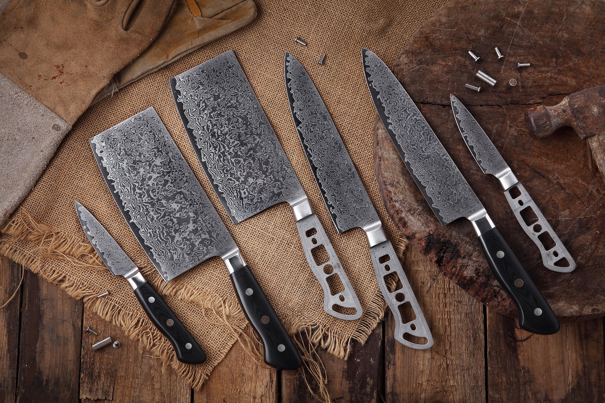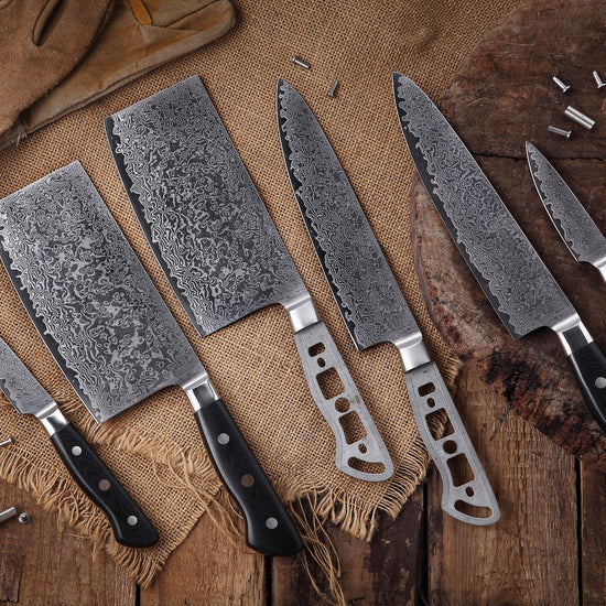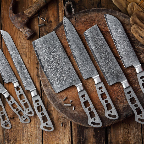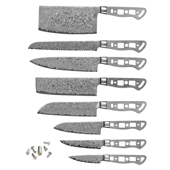 AUS-10 DAMASCUS 8-PIECE KNIFE BLANK SET