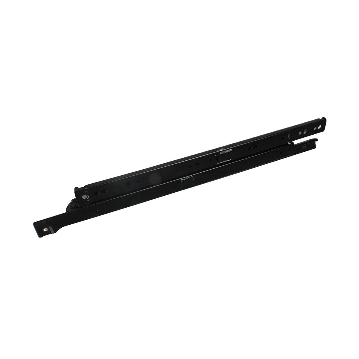 Three-section telescopic construction with positive front and back stops to prevent accidental drawer removal. Bottom-mounted drawers lift out easily and installation is as simple as a standard slide.
