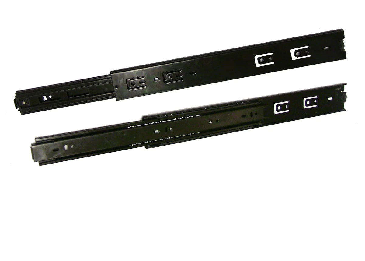 Super strong Selby slides! These heavy duty full-extension drawer slides slides are the industry's gold standard for heavy drawers. The ball bearings ensure that opening and closing drawers is quiet and smooth.
