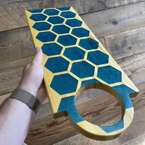 This laser cut acrylic Honeycomb Template is perfect for anyone looking to make a unique charcuterie boards, sign or decorative piece.