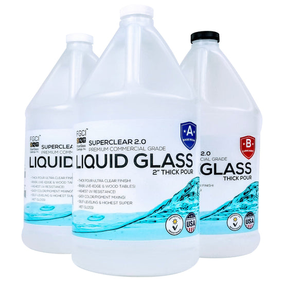 Our Liquid Glass Deep Pour Epoxy is absolutely unparalleled with a deep pour capability of 2-4 inches and gives you unmatched industry performance, convenience by eliminating 75% of your work, with the clearest finish you can get on the market today! This Kit includes 2 Gallon of Base Resin and 1 Gallon of Activator for a total of 3 gallons of epoxy.