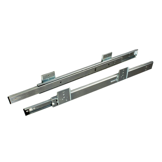 16" deep, extracts 12" to locked position, holding keyboard shelf at a secure latitude. Rated at 50 lbs. Release trigger returns keyboard to its original position. All-Steel, self-cleaning ball-bearing construction.