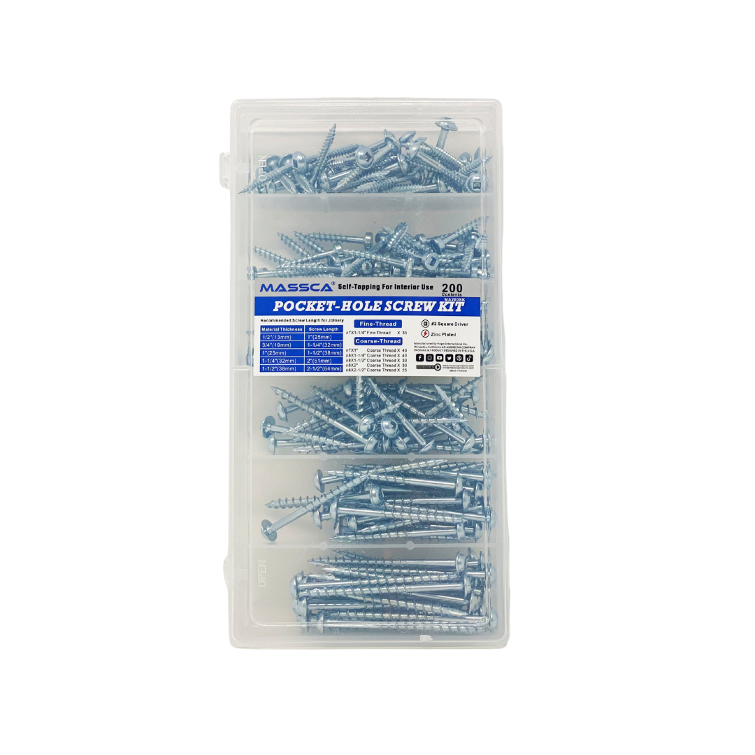 Each pocket hole screw features a self-tapping design that allows each screw to easily create its own threaded hole when being screwed into place so that it firmly holds into the wood when applied. This also makes it easy to remove and replace as well.