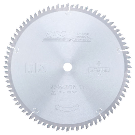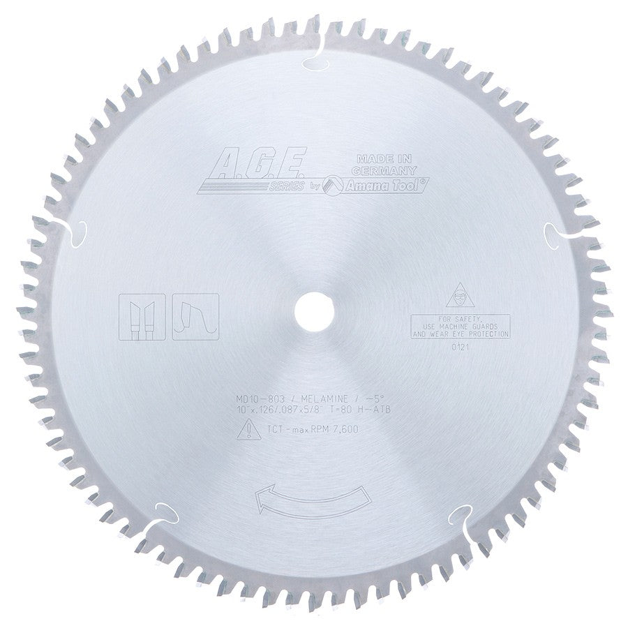 MD10-803 Carbide Tipped Double-Sided Melamine 10 Inch Dia x 80T H-ATB, -5 Deg, 5/8 Bore Circular Saw Blade