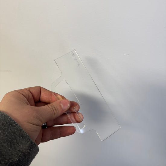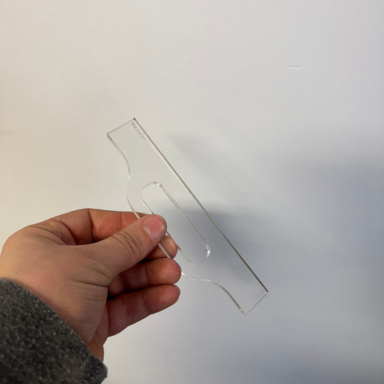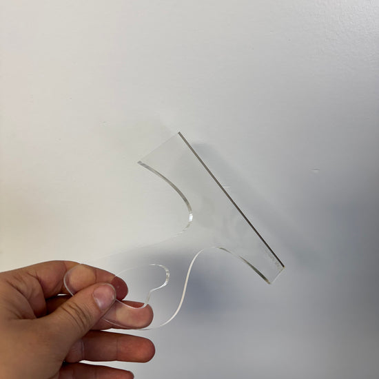 These laser cut clear acrylic mini Handle Templates are perfect for creating cheese boards and other small board handles.