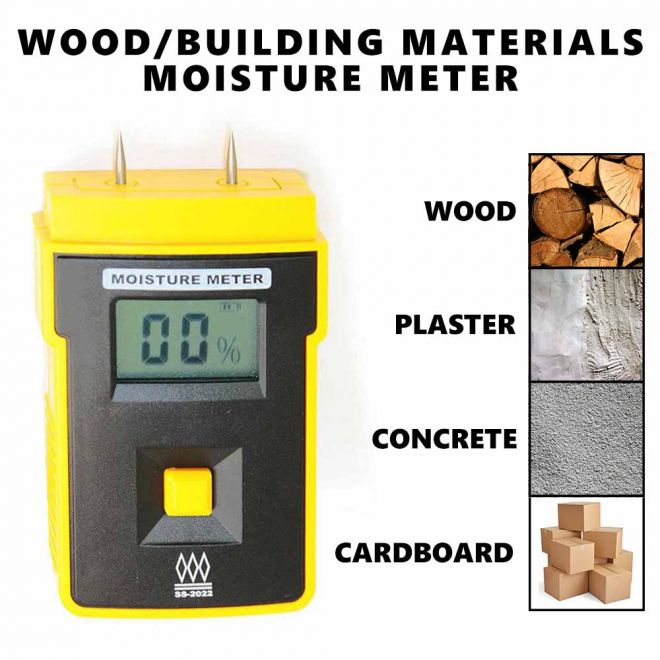 Big Horn T2000 Pin Type Moisture Meter Range 5~45% Digital Display. This moisture meter can detect the water composition of a wide range of materials such as wood, bamboo, gypsum, cotton, tobacco, paper and etc. It has wide measuring range of 5% to 45% moisture level. It has 2 steel sharp probes or pins and is one of the most versatile Moisture meter in the market today. It measures from 5% to 45% of moisture level of the object being tested, which make it an essential tool for either amateur or professional surveyors, woodworkers and craftsmen. Truly an effective device to check dampness in buildings and enables building surveyors and other users to measure moisture levels of soft to medium density of wood materials such as bamboos, Cardboard and paper, Chipboard, Fiberboard, Foam, Peat, Plaster and San.