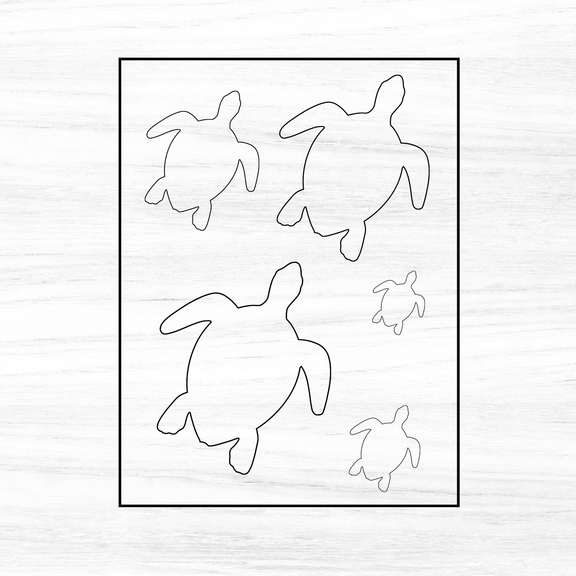 The Sea Turtle profiles are approximately 4" wide by 4.75" tall, 4.5" wide by 5.625" tall, 2.875" wide by 3.5" tall, 2" wide by 2.5" tall, and 1" wide by 1.325" tall.