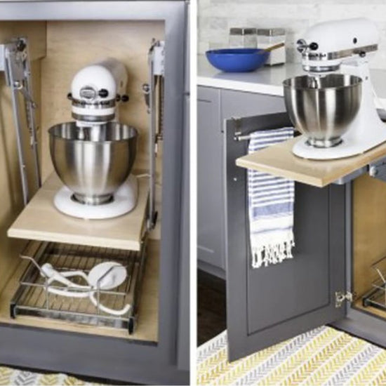 Provides mechanical assistance for heavy appliances such as a mixer or serger.
