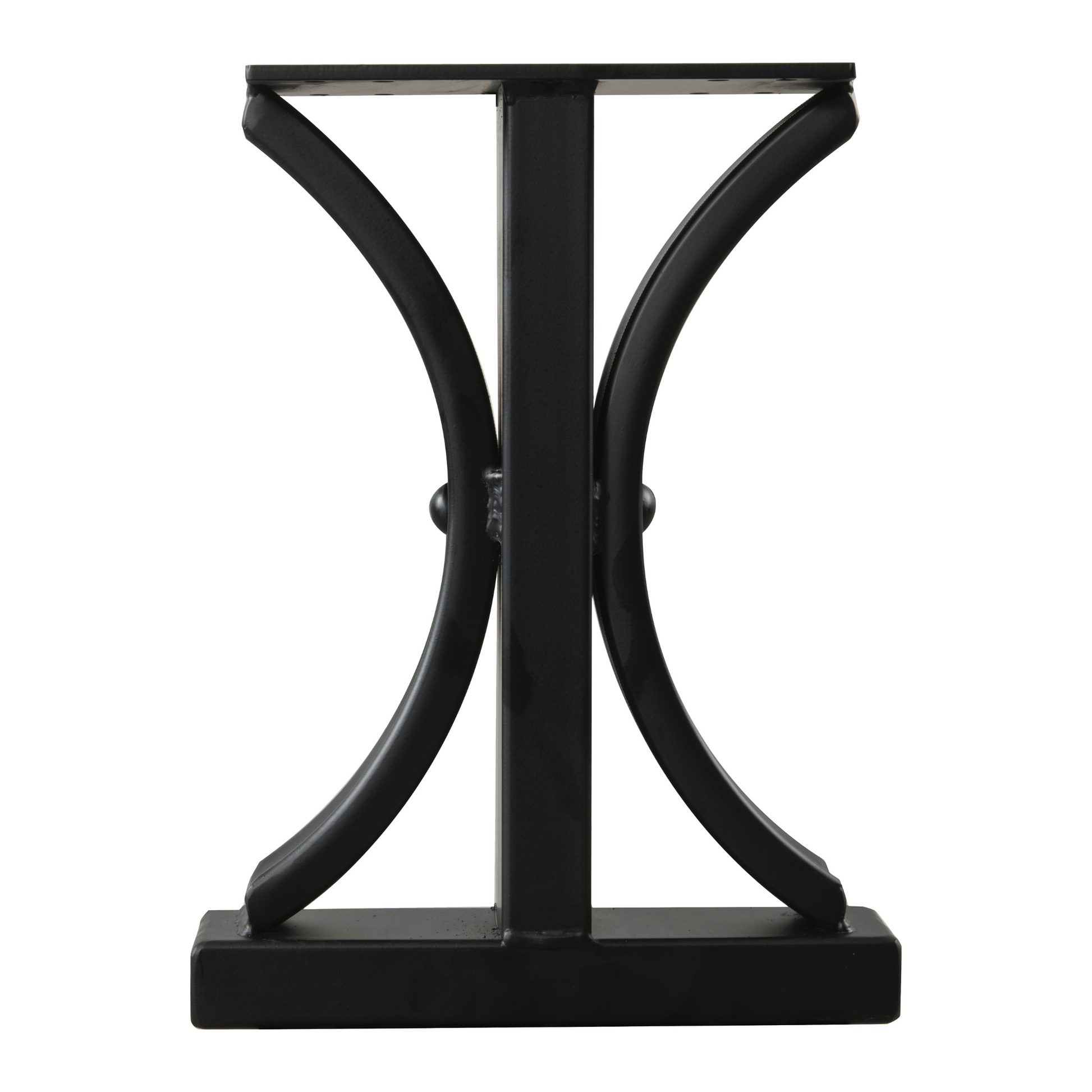 Our table legs are powder coated with a beautiful flat black finish that can be used indoors or outdoors. On our Cast table legs with raised lettering we hand paint the gold lettering giving it a little touch of elegance.