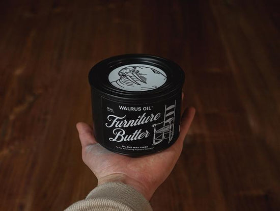 Walrus Oil's Furniture Butter penetrates and seals with plant-based polymerizing oils and hard waxes, pulling out natural wood colors and tones, and locking them in permanently. The hard waxes add sheen and provides water protection after fully cured. Furniture Butter can be used as a completely standalone product and "one n done" solution. It also can be used after our Furniture Finish or before our Furniture Wax. Handcrafted with Perilla Seed Oil, Polymerizing Safflower Oil, Hemp Seed Oil, Tung Oil, Carnauba Wax, Candelilla Wax, Pine Rosin, with a hint of Lime.