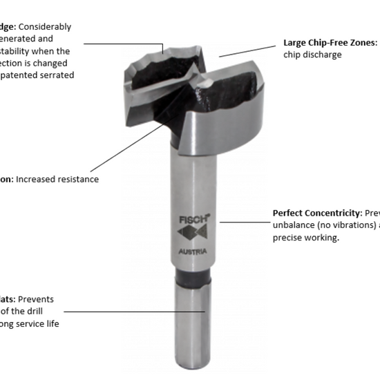 The Fisch Wave Cutter Forstner Bit is a high-performance, multifunctional forstner drill bit that can be used for many different applications. Designed with Fisch’s patented Wave Cutter technology, it drills faster than most of the competition while using less power, without any clogging. Wave cutter bits are made of high-speed steel, forged, and manufactured in Austria.