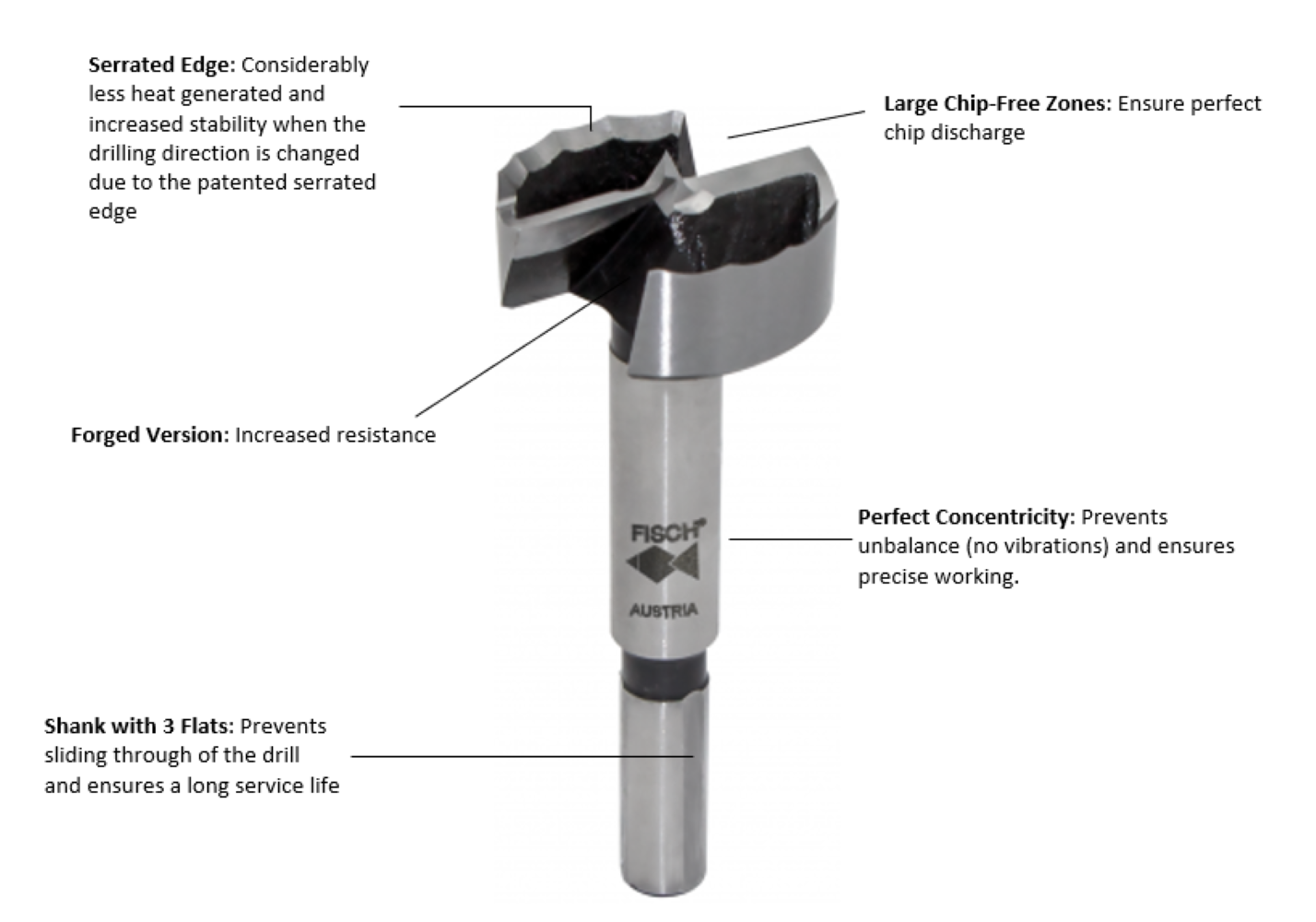 - Optimized cutting resulting in a cut that is 3x faster than traditional forstner bits