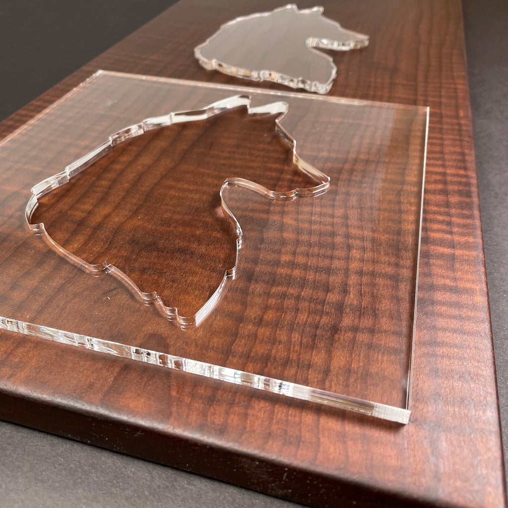 These laser cut clear acrylic Templates are perfect for creating unique inlays in signs, charcuterie boards and more!